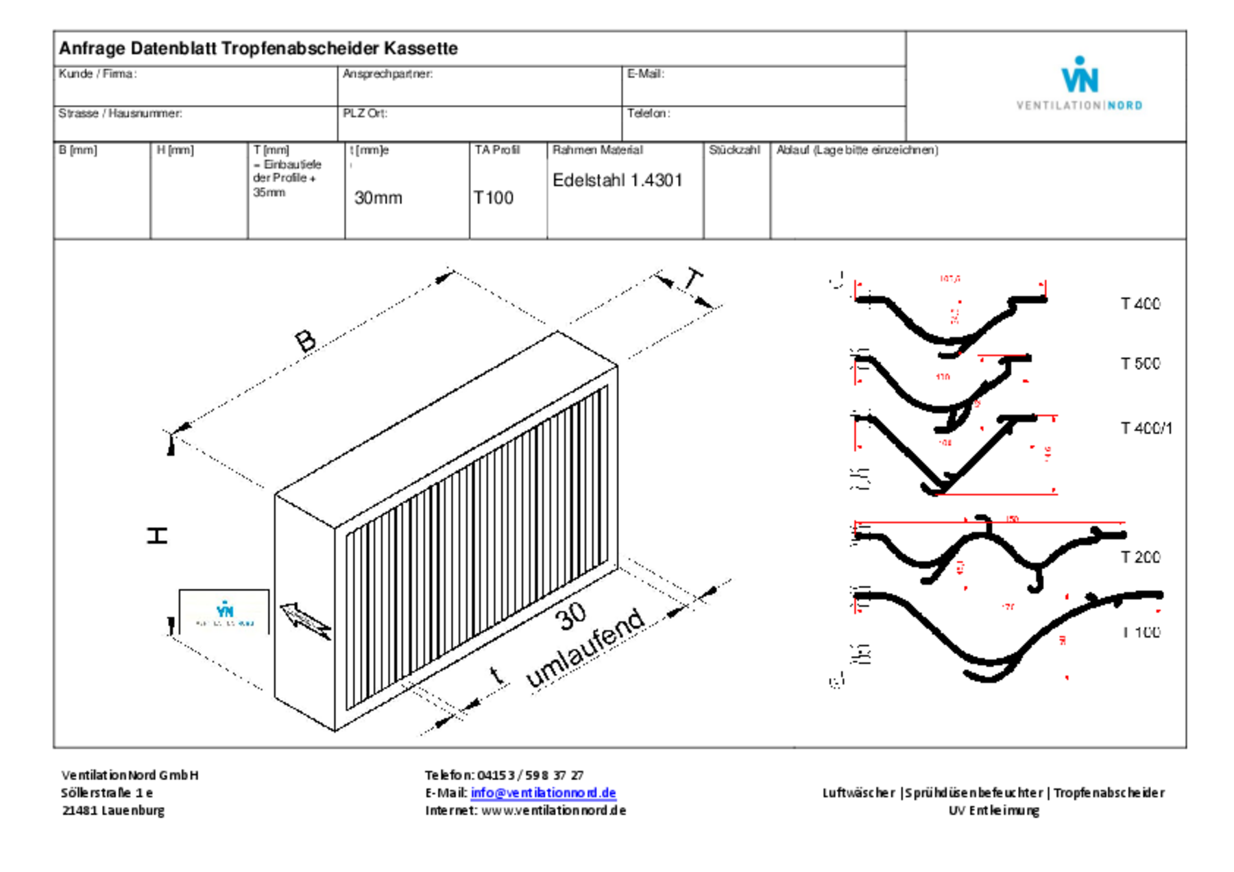 Mit Tropfenabscheider Kassetten (TA Kassetten) können Sie die Reinigungszeiten Ihrer Luftwäscher verkürzen. Wir fertigen die Rahmen aus Edelstahl 1.4301 oder 1.4571.